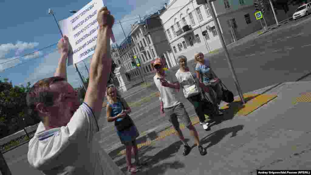 Ассоциация незаконно осужденных РТ провела 12 июня серию одиночных пикетов в Ленинском саде Казани. На акцию протеста в полдень вышли несколько членов ассоциации: Надежда Шакирова, пытающаяся привлечь к ответственности виновных в пытках её брата — Сергея Григорьева, Искандер Мушинский, о судьбе которого "Idel.Реалии" также рассказывали подробно, и другие борцы с полицейским произволом.