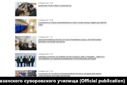 Республиканские СМИ и телеканалы 23 февраля после 16 часов выложили свои новости о визите президента в суворовское училище. Все это — перепечатки с сайта президента с использованием видео и фото оттуда же. Кроме сюжета телеканала "Россия". Они опубликовали свой репортаж тоже 23 февраля — так, как будто он был снят именно в тот день. В видеорепортаже на сайте президента виден микрофон корреспондента — это оборудование телеканала. То есть можно предположить, что журналист был вместе с президентом 18 февраля в Суворовском училище.