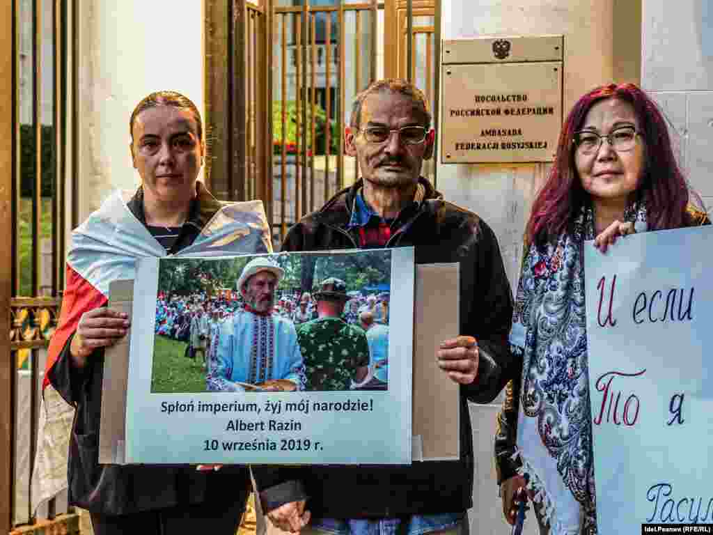 Пикет в память об удмуртском учёном Альберте Разине, который совершил акт самосожжения в знак протеста против национальной политики РФ 10 сентября 2019 года, провели в Варшаве татарские, бурятские и белорусские активисты. Акция прошла у посольства РФ. Таким образом участники заявили несогласие с проводимой путинским режимом политикой по отношению к народам России и соседних стран.