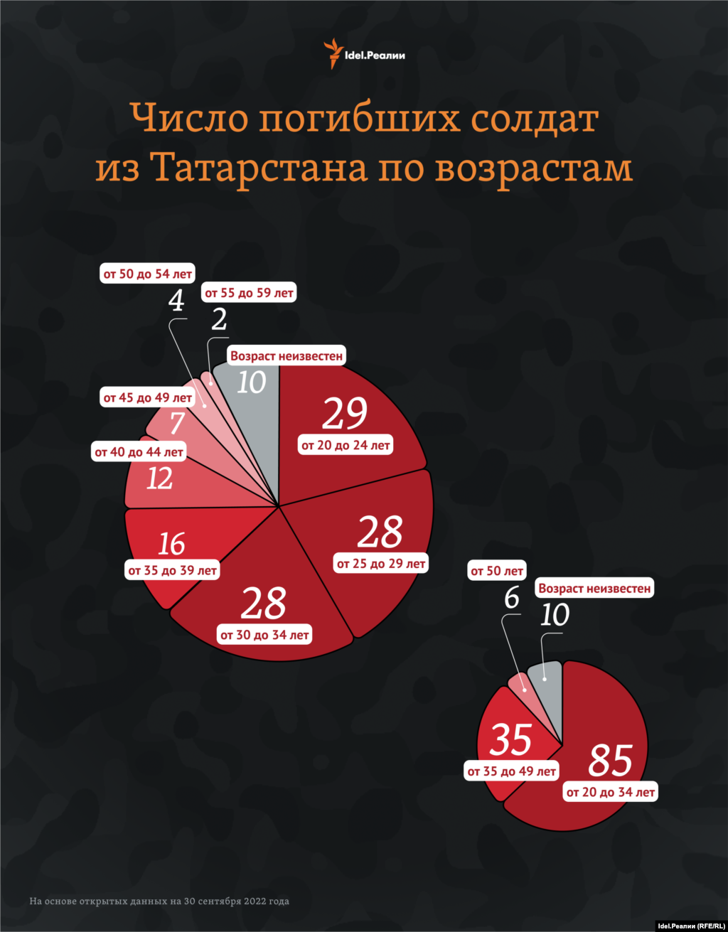 62,5% погибших на войне с Украиной татарстанцев были в возрасте от 20 до 34 лет