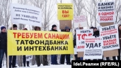21 января прошел первый крупный митинг вкладчиков ТФБ и Интехбанка. В заключение акции протестующие единогласно приняли резолюцию. В ней они потребовали санации Татфондбанка и Интехбанка, проведения расследования и поиск виновных в случившимся, а также признания вкладчиков с доверительным управлением "ИК "ТФБ Финанс" обычными вкладчиками (то есть считать 1,4 млн страховой суммой) и встречи с правительством и президентом Татарстана.