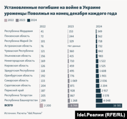 - "Idel.Реалии" ведут собственный подсчет погибших военных и добровольцев. В этом списке представлены только те, чью смерть так или иначе признала российская сторона, родственники погибших или учебные или другие общественные заведения. Реальные цифры могут быть значительно выше.